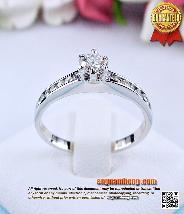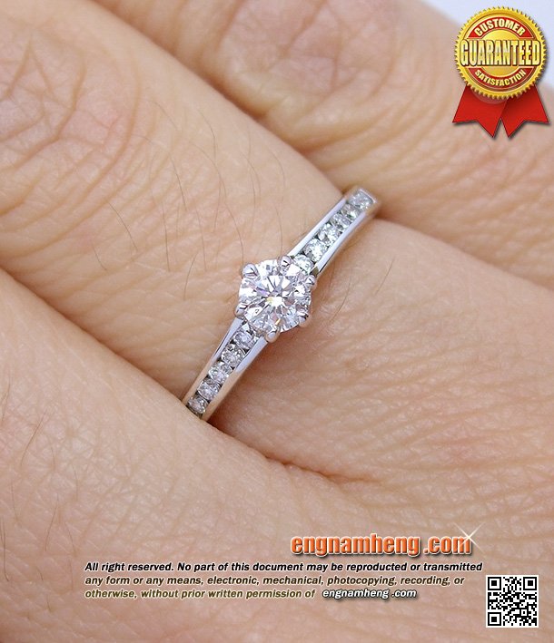 แหวนเพชรชู เพชรเบลเยี่ยมคัทน้ำ 98 F-Color/VVS เพชรทั้งหมด 15 เม็ด น้ำหนักเพชรรวม 38 ตังค์ เม็ดกลางขนาด 21 ตังค์ เม็ดข้าง 14 เม็ด น้ำหนักเพชรรวม 17 ตังค์ ขนาดน่ารัก เพชรเป็นประกายแวววาวสวยใส น่ารักดีค่ะ